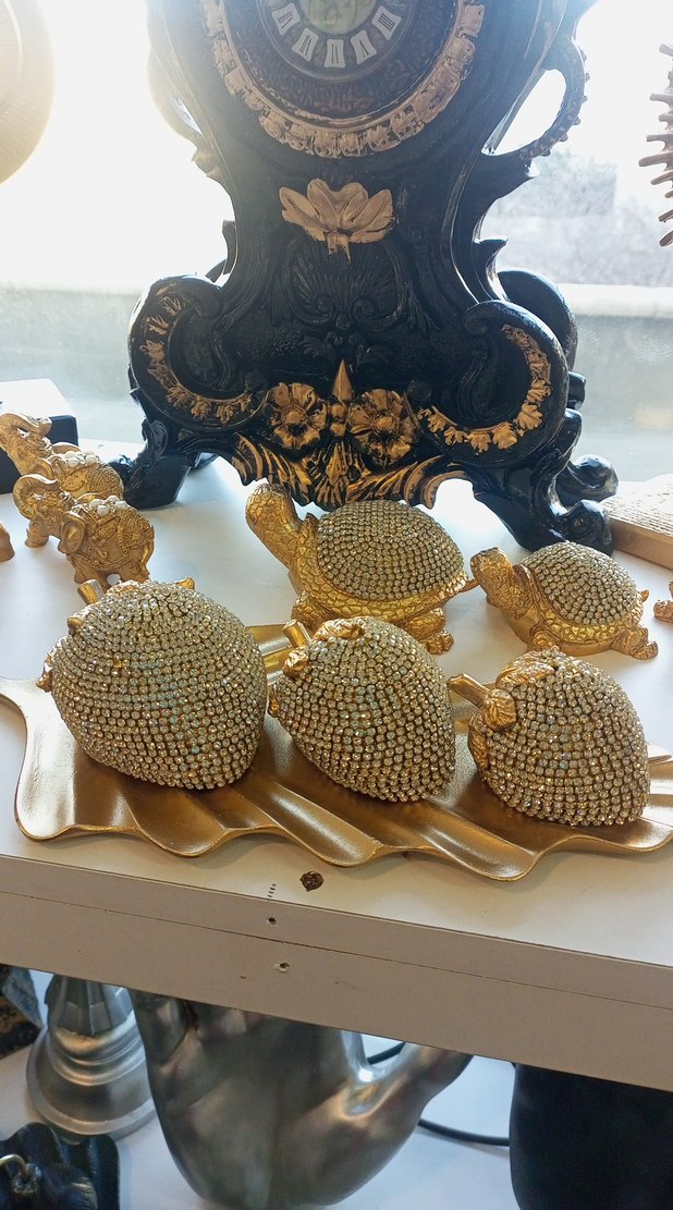 Parlak boncuklarla kapli altın renkli ev dekorasyon ürün çeşitleri Sancaktepe Akpınar mah Rüzgarlı sok durağında Magzamiza bekleriz kargomuz yoktur