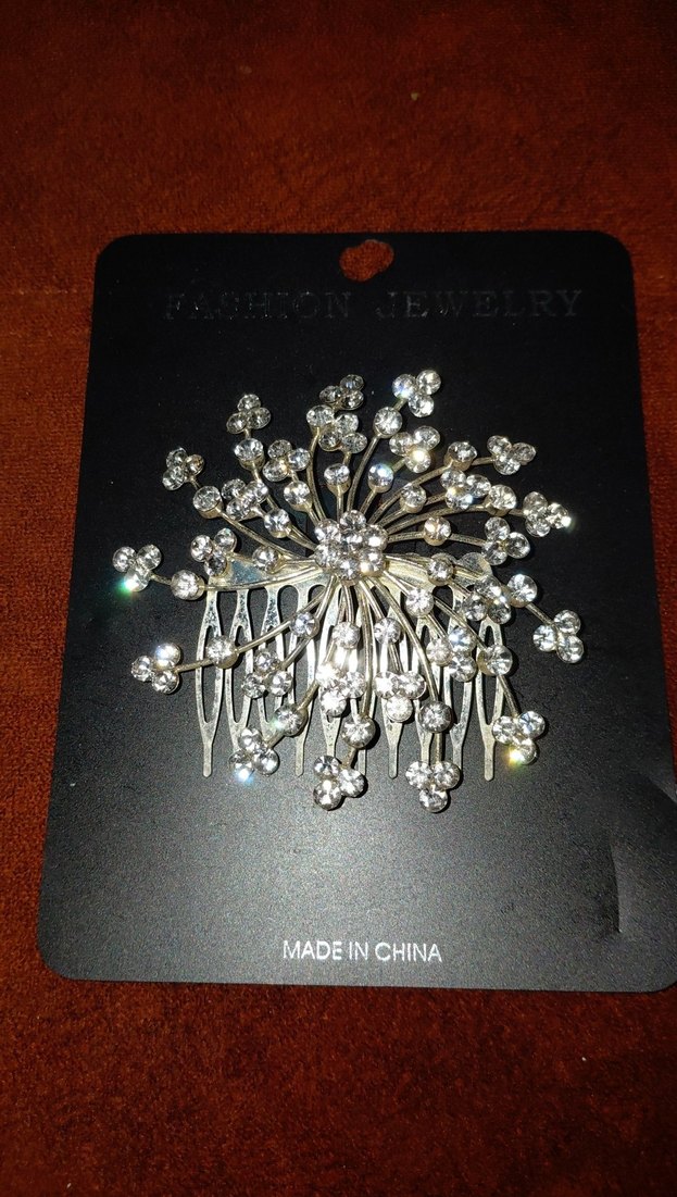 Altın renkli metal saç tokası, parlak taşlarla çiçek deseni oluşturuyor. Güncel tasarımı ve ışıltılı detaylarıyla dikkat çekiyor. Çin'de üretilmiştir. ✨