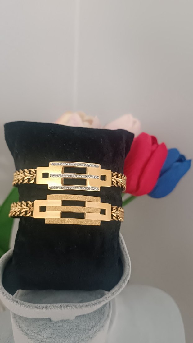 Altın renkli, tokalı ve desen içermeyen kadın bileklikleri, günlük kullanıma uygun şık tasarım.