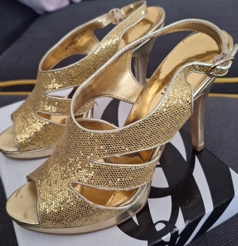 Altın Renkli Topuklu Kadın Abiye Ayakkabı
