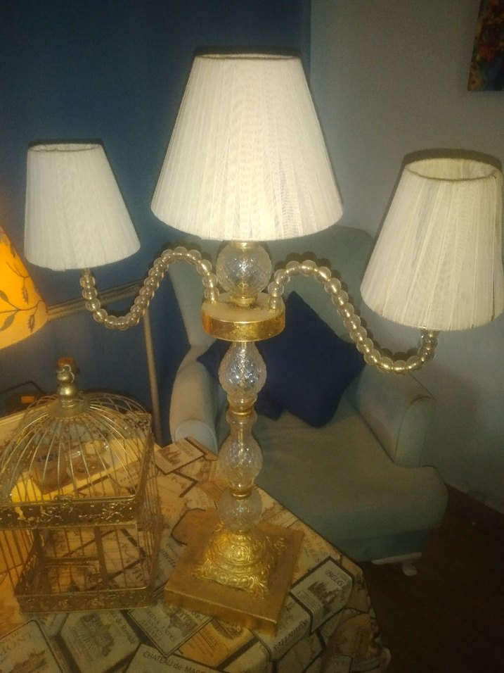 Altın Renkli Üç Kollu Abajur ve kafes vintage ürün
