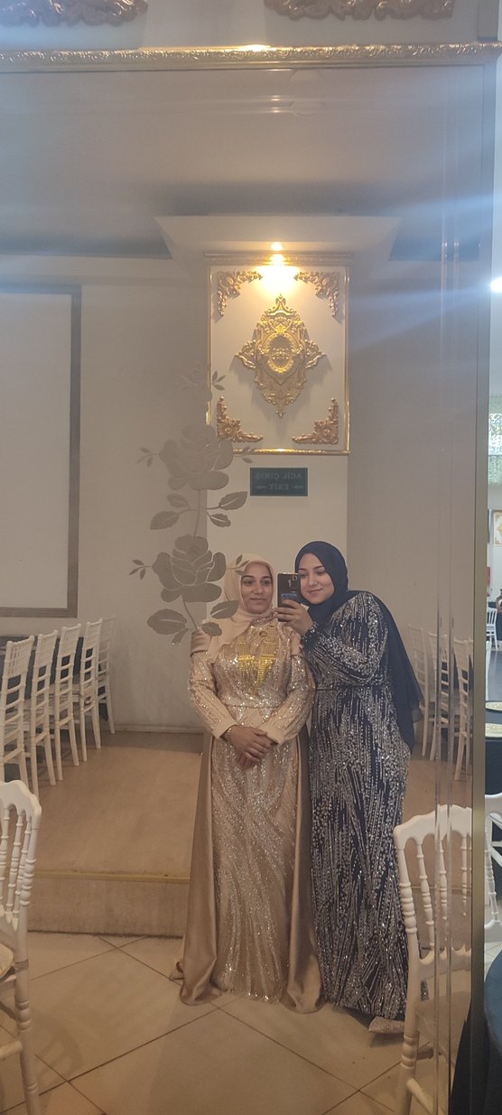 Altın Renkli Uzun Kollu Kadın abiye