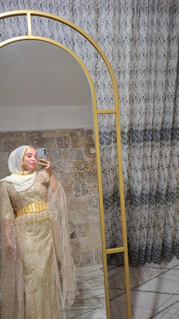 Altın Renkli Uzun Kollu Kadın Hint Elbisesi