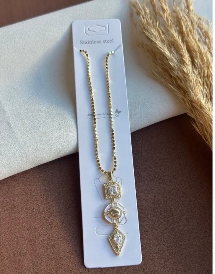 Altın Renkli Uzun Zincir Detaylı Bohem Kolye