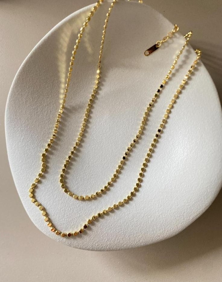 Uzun, altın renkli ve zincir detaylı bu kolye, parlak yılan deseniyle minimalist ve çağdaş tarzı bir araya getiriyor. Günlük kullanıma uygundur. ✨