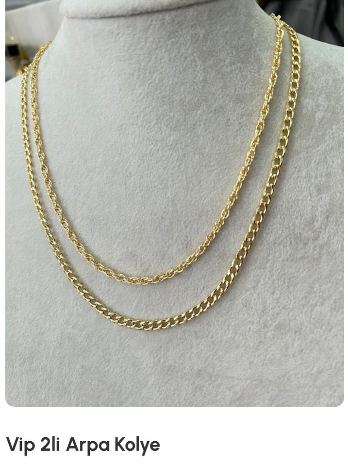 Kadınlar için2 Li uzunlukta, parlak altın renkli iki zincir detaylı, desen içermeyen sade bohem tarzda kolye. ☀️