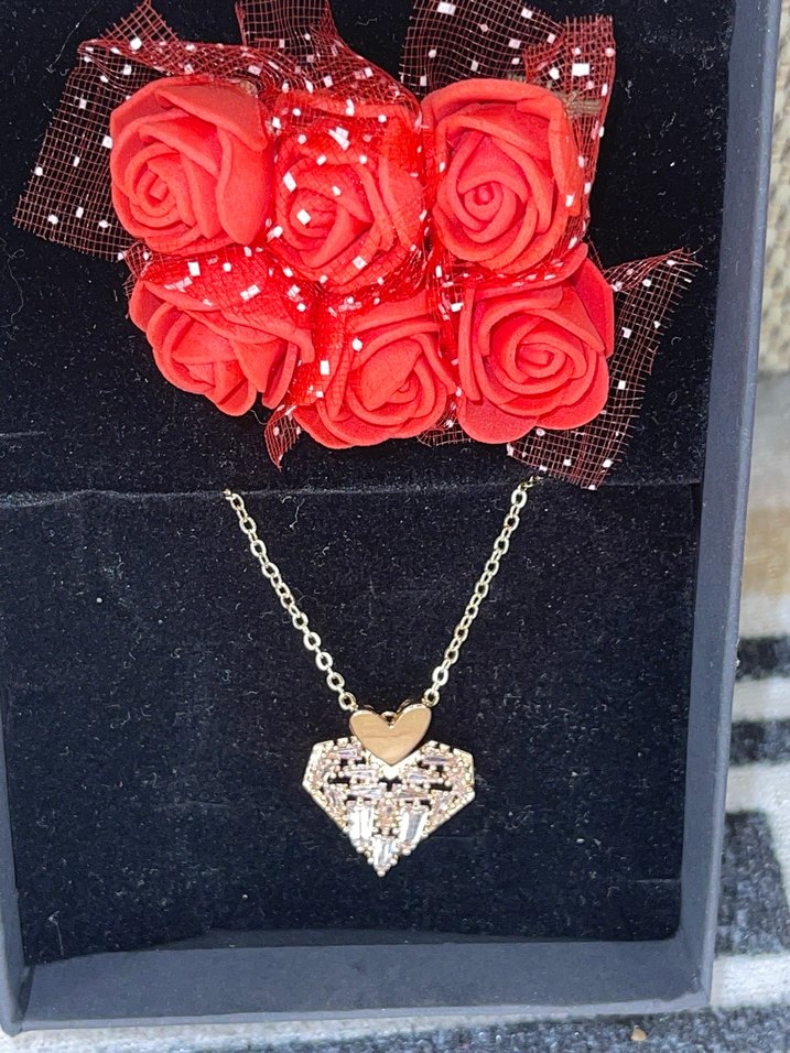 Altın Renkli Uzun Zincirli Kalp Kolye