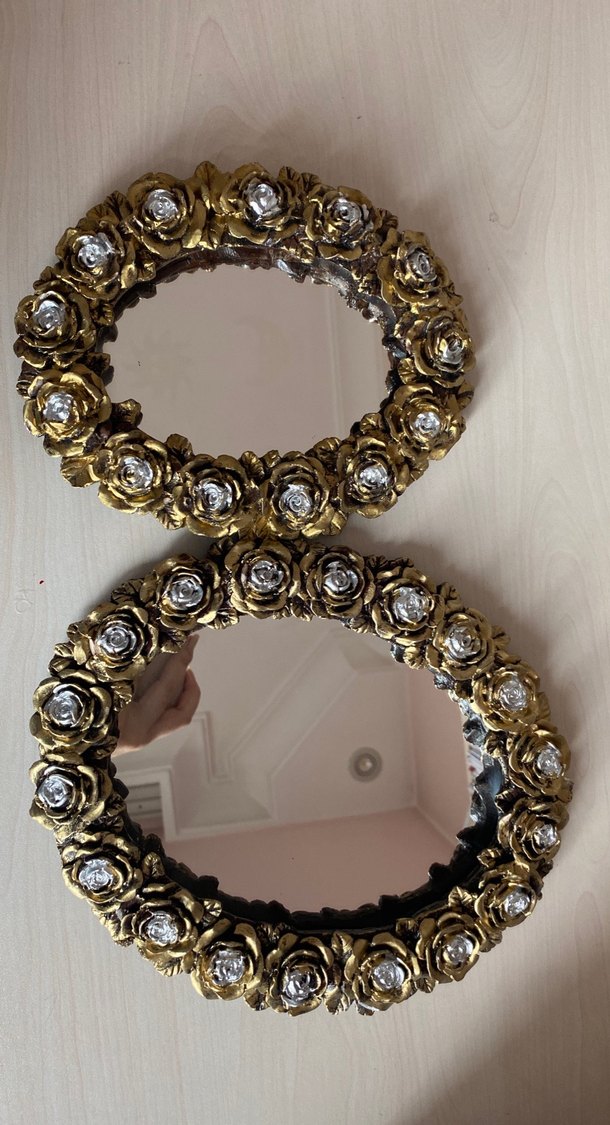 Altın Renkli Vintage Çiçekli Dekoratif Ayna