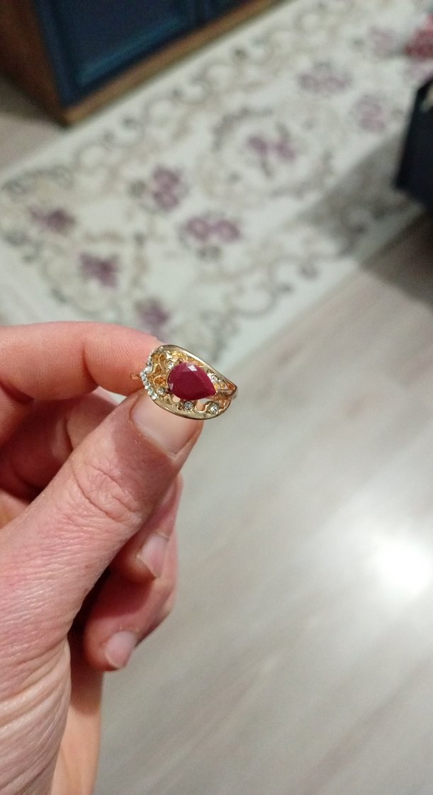 Altın renkli, payetli detaylara sahip, renkli desenli bohem tarzda vintage kadın yüzük.