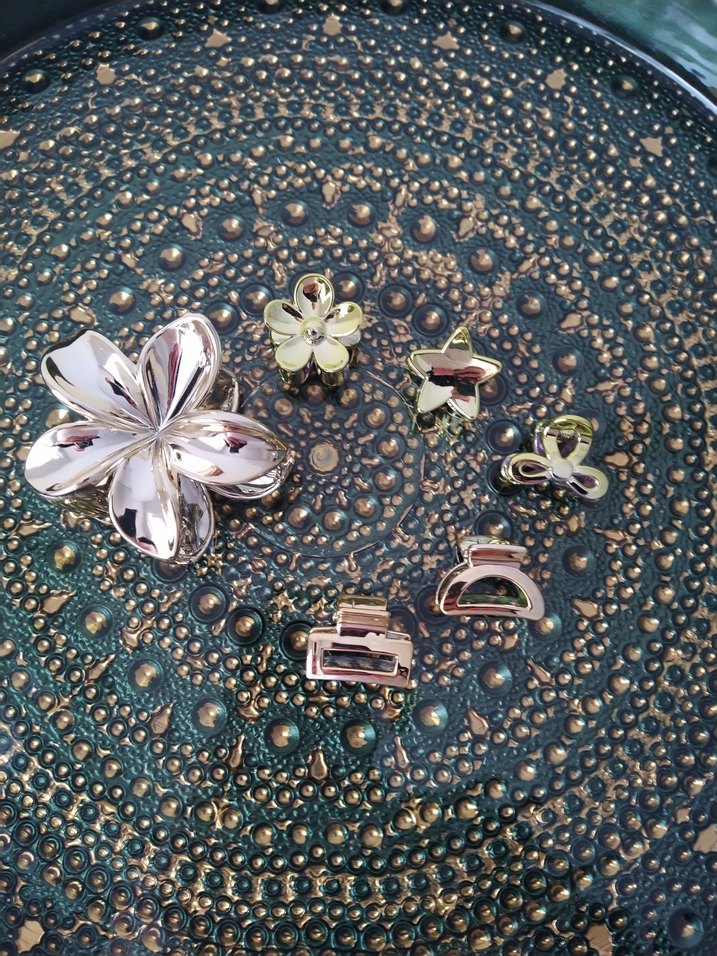 Nakışlı ve payetli detaylara sahip altın renkli vintage toka seti, bohem ve retro tarzında, düğünler için uygun.