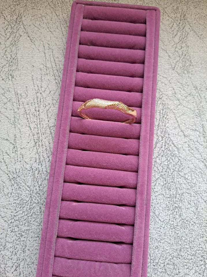 Altın renkli, yılan desenli ve pileli detaylı kadın bileklik. Klasik zarafet ve göz alıcı bohem stilini bir araya getirir. Düğünler için uygun. ✨