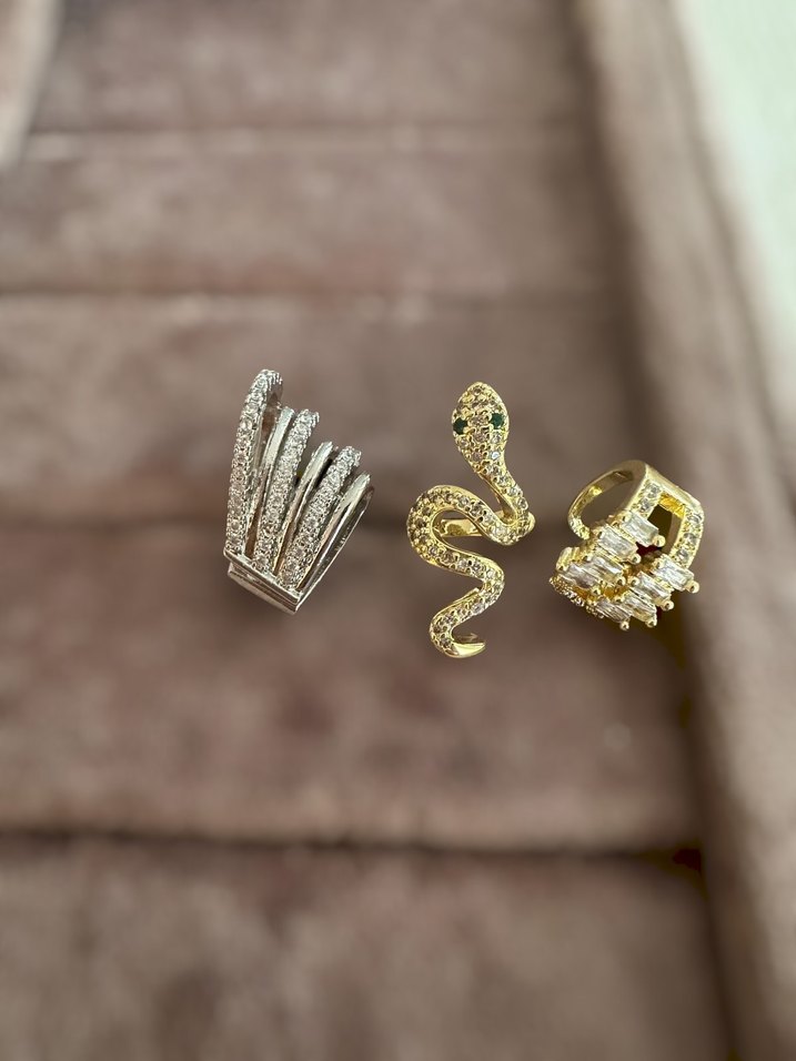 Altın Renkli Yılan Desenli Payetli Kadın Kulak Earcuff