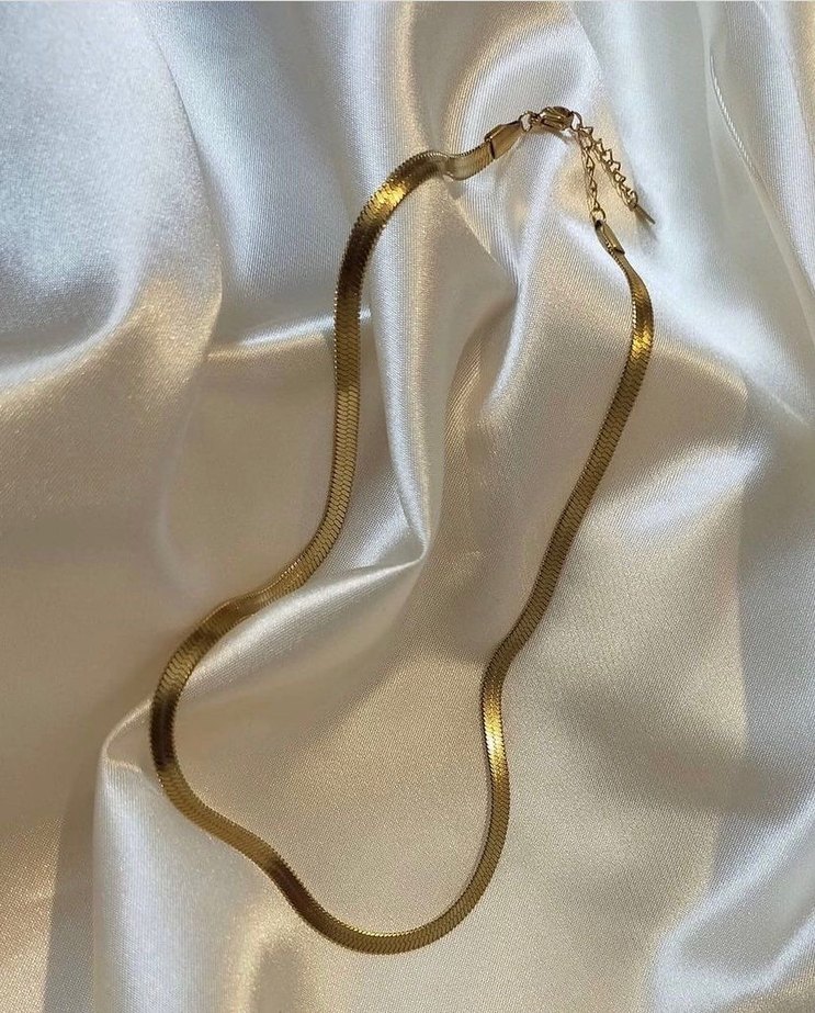 Parlak altın renkli, yılan desenli detaylı zincir kolye. Normal midi uzunlukta, minimalist ve klasik sokak stiline uygun günlük kullanım için. Çelik İtalyan ezme kolye.