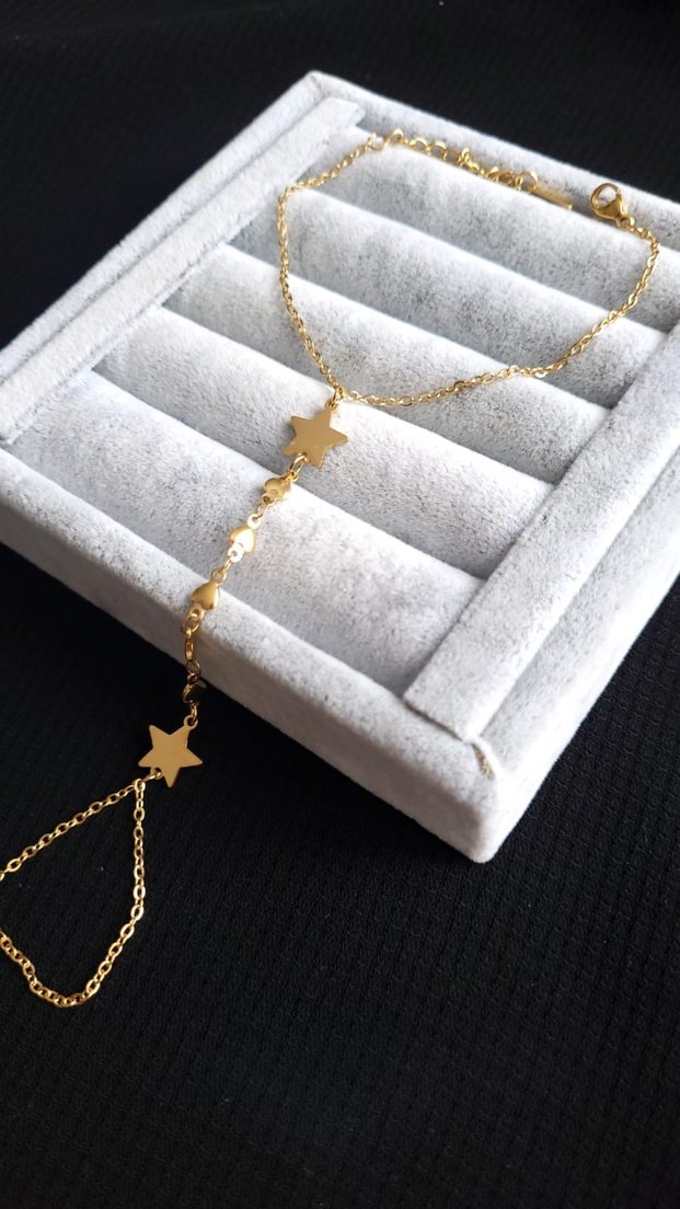 Parlak altın renkli, yıldız detaylı kadın şahmeran. Minimalist ve bohem tarzlara uygun, günlük kullanıma ideal. ✨