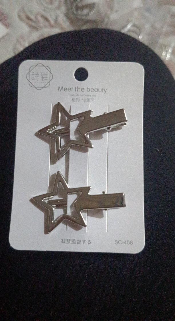 Altın renkli metalden yapılmış, yıldız şeklinde ve tokalı saç aksesuarları, minimalist ve çağdaş tarzda.
