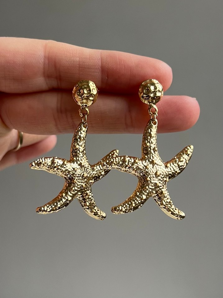 Altın renginde, dokulu yıldız şeklinde midi uzunlukta, parlak ve payet detaylı küpeler. Bohem stil için uygundur. ✨
