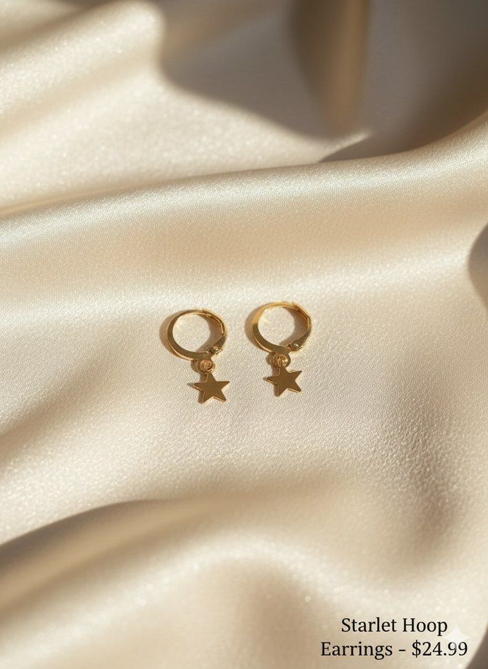 Parlak altın renk halka küpeler, boncuklu yıldız figürlü, minimalist ve klasik tarz için uygun. Romantik akşamlar için ideal. ✨
