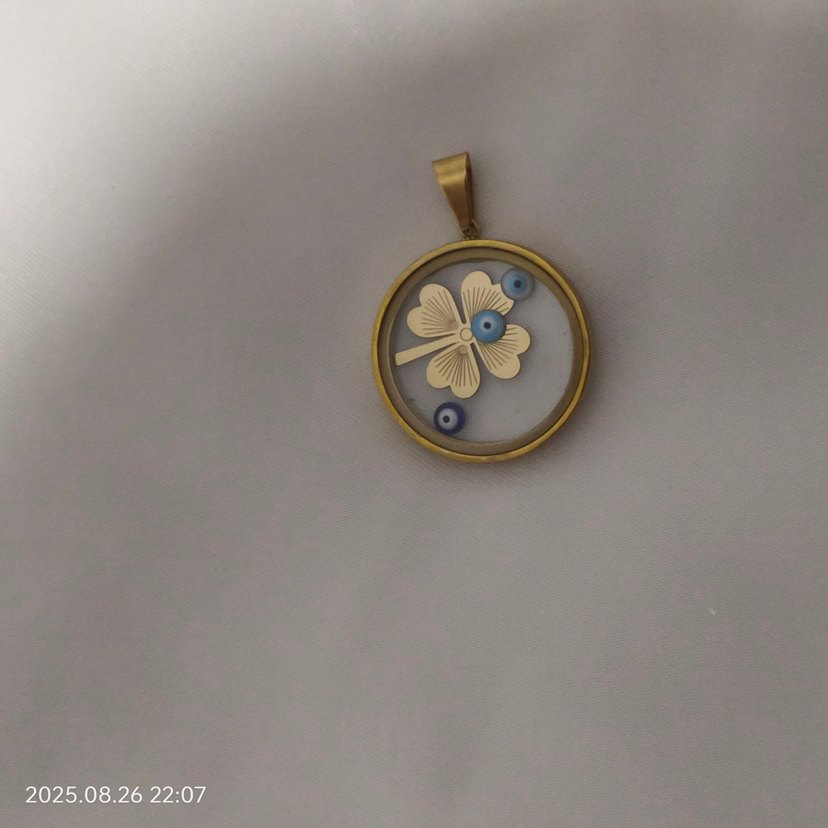 yonca ve nazar boncuk detaylı altın renkli kolye, günlük kullanım için minimalist bohem tarzda. zinciri yoktur. teklif vermekten çekinmeyen fiyatlarda yardımcı olurum.