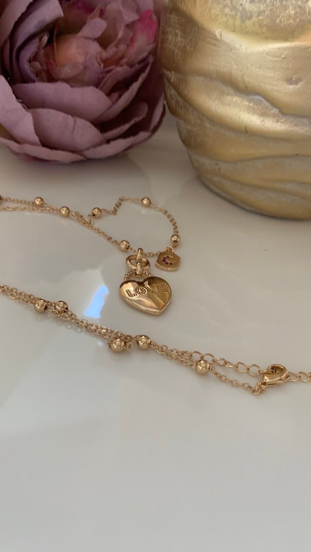Altın Renkli Zincir Detaylı 80 cm kalp detay premium Kolye