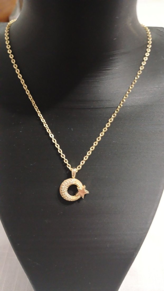 Zincir detaylı altın renkli Ay Yıldızlı Kolye, günlük kullanıma uygun.