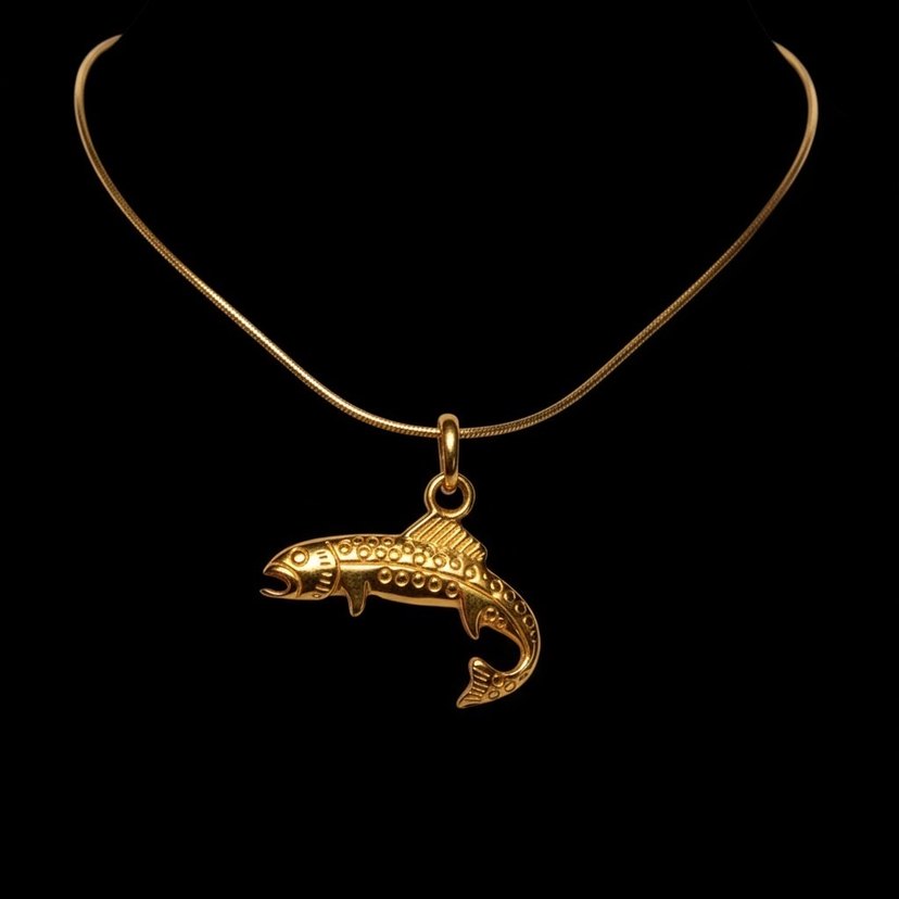 Altın renginde, zincir detaylı ve klasik yılan desenli balık figürlü kolye. Midi boyda, romantik akşamlar için uygundur.