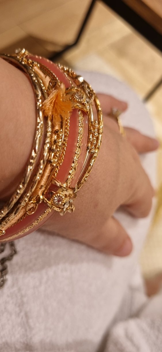 Altın renkli, zincir detaylı bohem tarzında bileklik. Renkli yılan desenli ve retro havası ile düğünler için uygun. çoklu takı takım