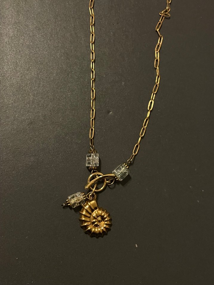 Parlak deniz kabuğu detaylı, altın renkli zincirli bohem tarzda, günlük kullanıma uygun normal midi uzunlukta kolye. ✨