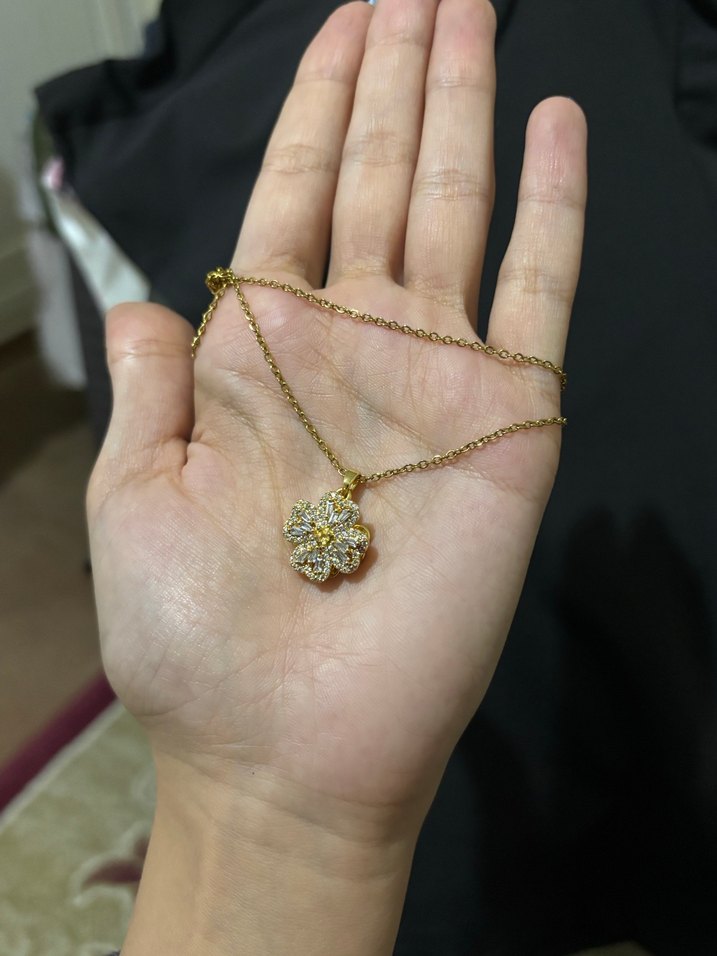 Altın Renkli Zincir Detaylı Çiçek Kolye