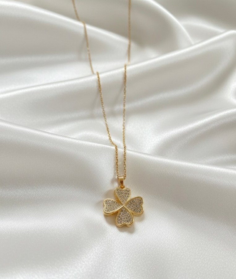 Altın renkli, zincir detaylı ve hafif çiçek desenli midi uzunlukta kolye, günlük sokak stiline klasik bir zarafet katıyor.
