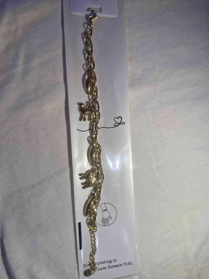 Parlak yüzeye sahip, yılan desenli ve zincir detaylı altın renkli kadın bileklik. Plating in uum furnace 316L ile üretilmiştir.