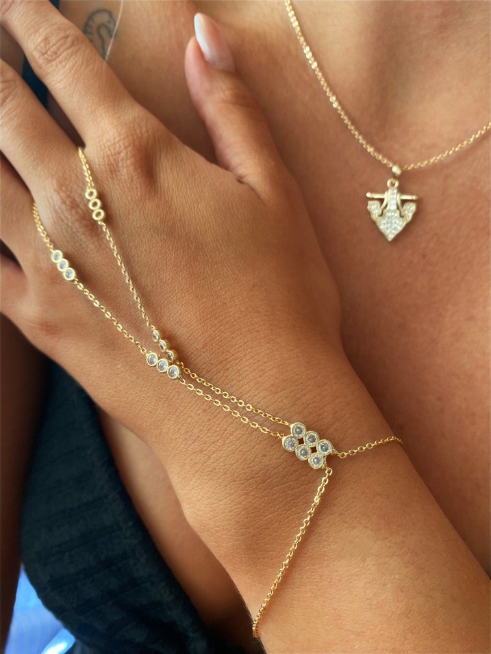 Altın Renkli Zincir Detaylı Kadın El Zinciri