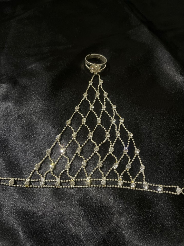 Parlak altın renkli zincir detaylı kadın el zinciri, avangart ve şık tasarımıyla parti için uygundur. ✨