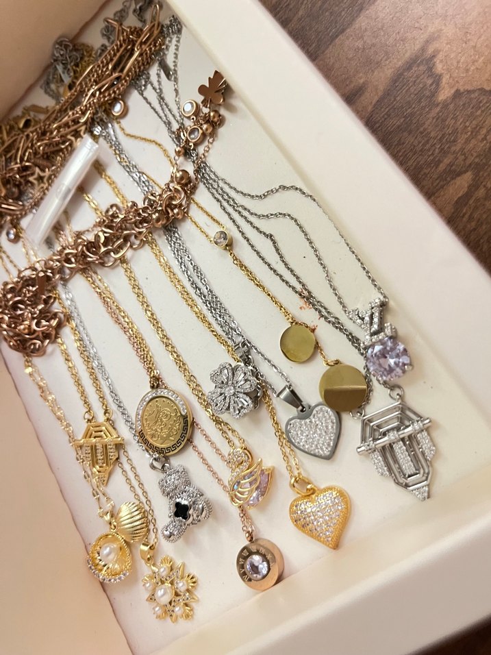 Hafif altın tonlu, zincir detaylı ve desenli kolye uçlarıyla bohem Paris tarzında kadın kolyeleri. Günlük kullanıma uygun. ✨çeliktir