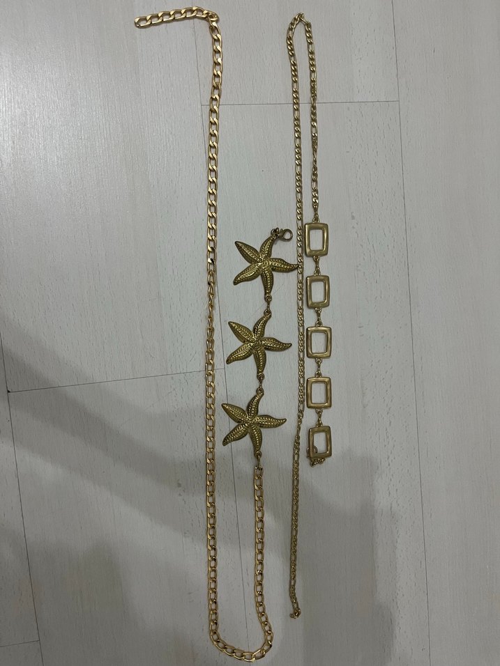 Altın renkli, zincir detaylı ve işlemeli denizyıldızı desenli kadın vücut zinciri, minimalist bohem tarz için uygun. ✨