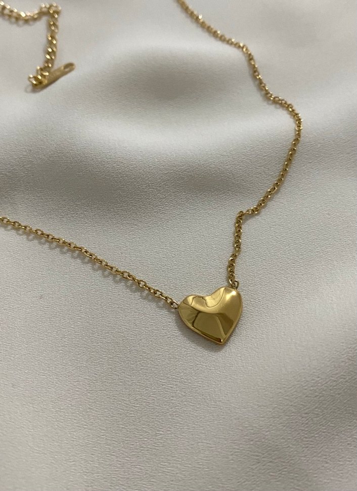 Altın Renkli Zincir Detaylı Kalp Kolye