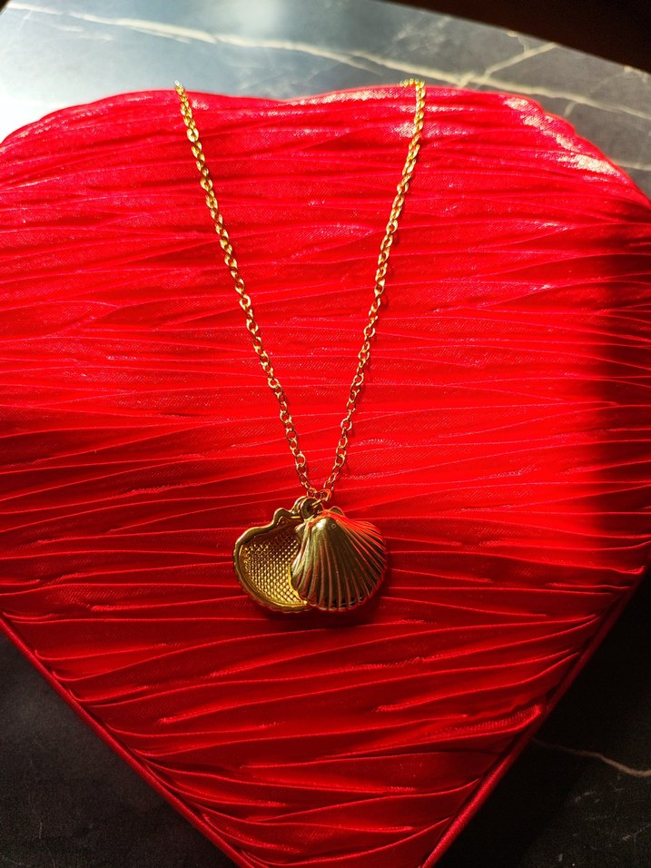 Altın renkli, zincir detaylı bu kolye, iki deniz kabuğu ucu ile bohem tarz sunar. Orta boy uzunlukta, desen içermeyen sade tasarım.