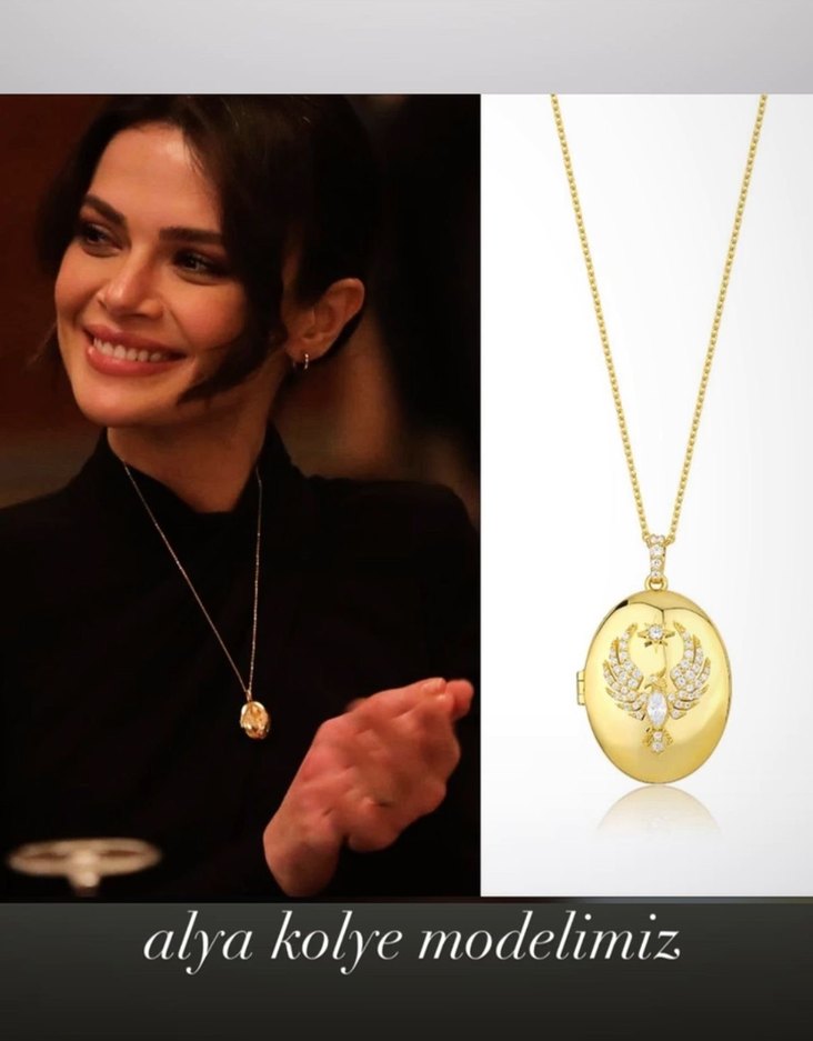Parlak altın renkli, zincir detaylı ve etnik desenli midi uzunlukta kolye. Romantik akşamlar için uygundur. "alya kolye modelimiz" tasarımını taşır. ✨