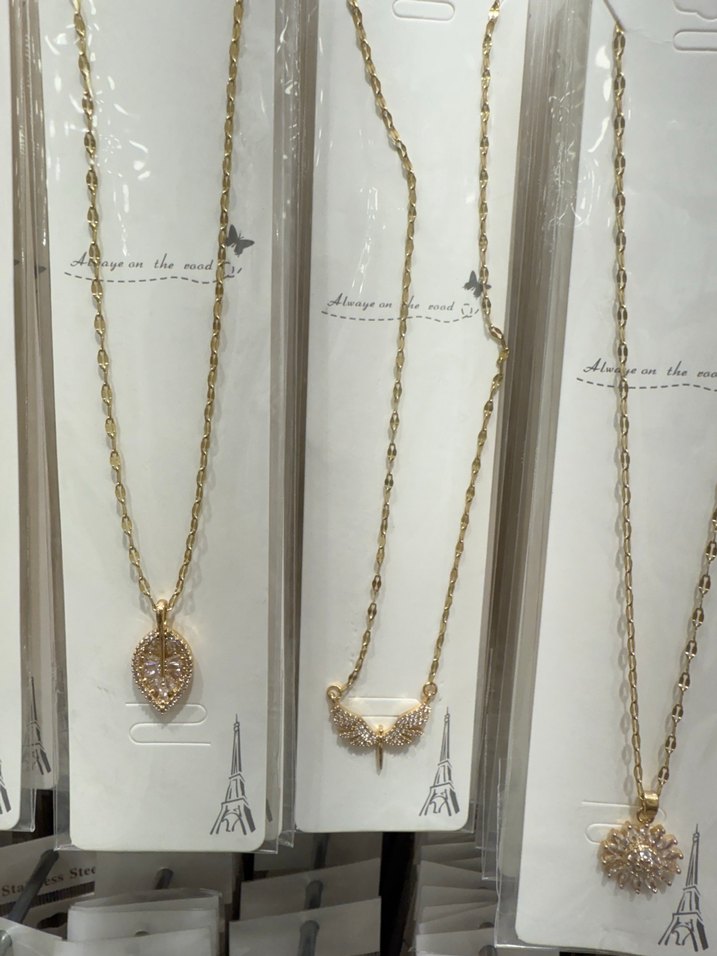 Altın renkli zincir detaylı, nakış desenli, minimalist ve bohem tarzda günlük kullanıma uygun midi uzunlukta kolyeler. ✨