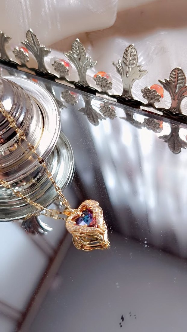Altın renkli, zincir detaylı ve bağlama desenli kalp uçlu midi uzunlukta bohem tarzda klasik zarafet sunan kolye. ❤️