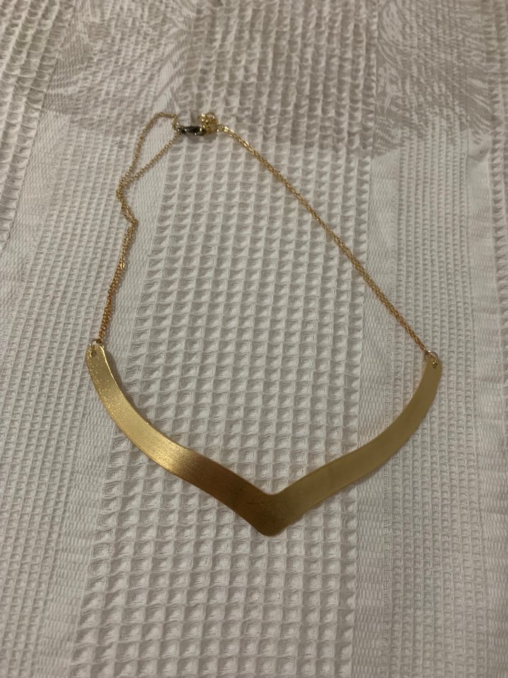 Altın renkli, zincir detaylı ve desensiz midi uzunluğunda kolye. Parlak yüzeyi ve çağdaş minimal tarzıyla günlük kullanıma uygundur.