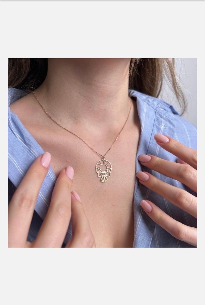 Altın Renkli Zincir Detaylı Mini Bohem Gümüş Kolye
