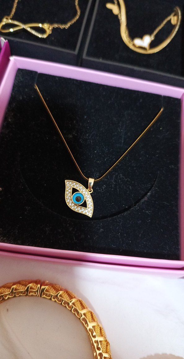 Altın Renkli Zincir Detaylı Mini. nazarKolye