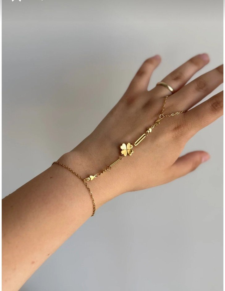 Altın renkli, zincir detaylı ve minimal tasarıma sahip şahmeran Küçük yonca figürü ile bohem tarzda günlük kullanıma uygundur.