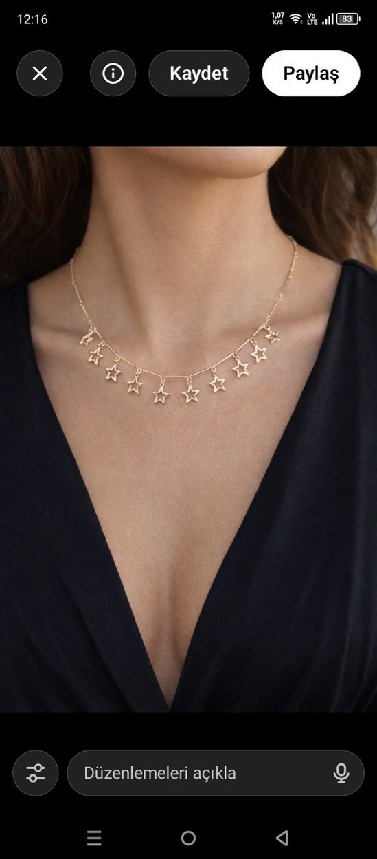 Parlak altın renkli zincir üzerinde küçük yıldız figürleri bulunan, minimalist ve bohem tarzda normal boy midi kolye. Romantik akşamlar için uygun. ✨
