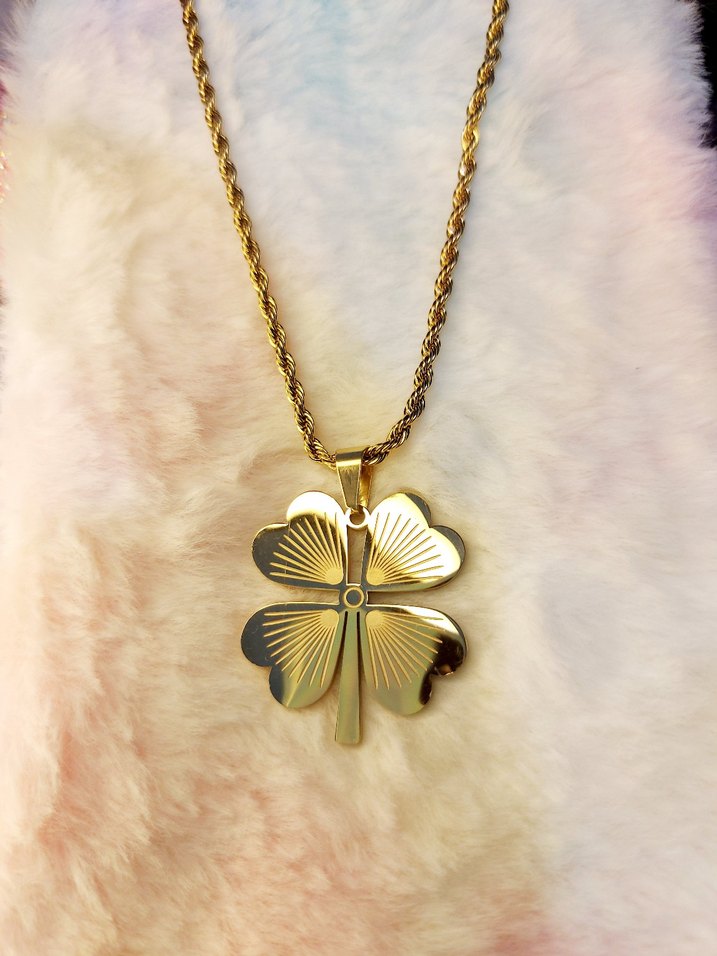 Altın Renkli Zincir Detaylı Yonca Kolye