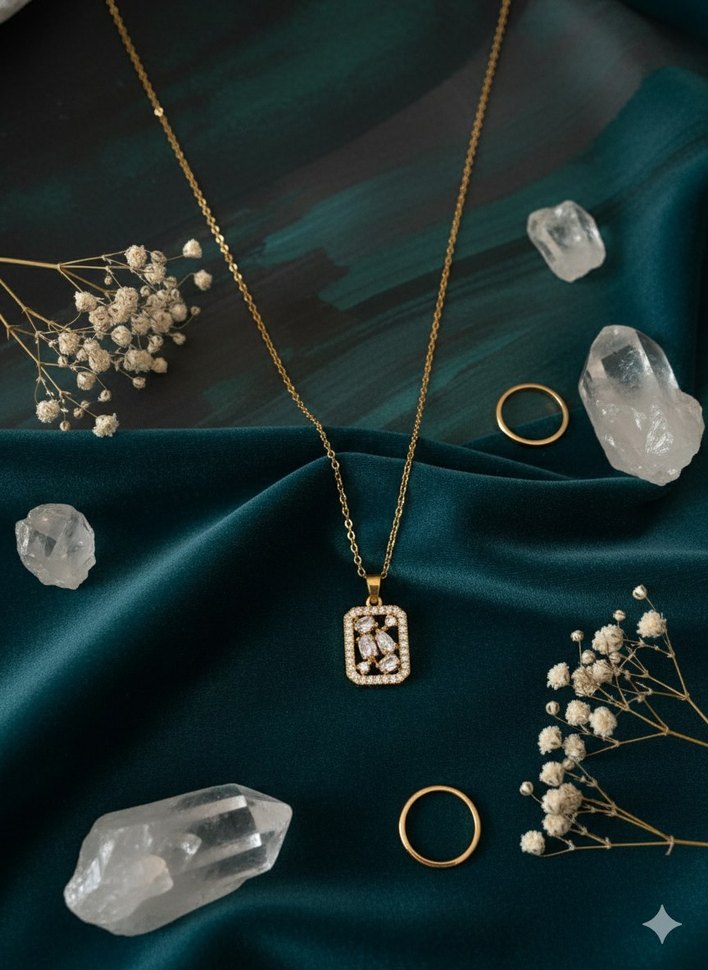Altın Renkli Zirkon Taşlı Çelik Kolye