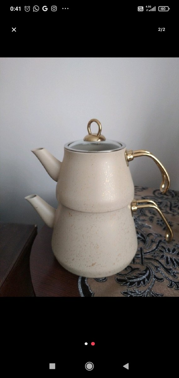 Altın saplı beyaz çaydanlık seti, şık tasarımlı iki katlı demleme ve servis için uygun.