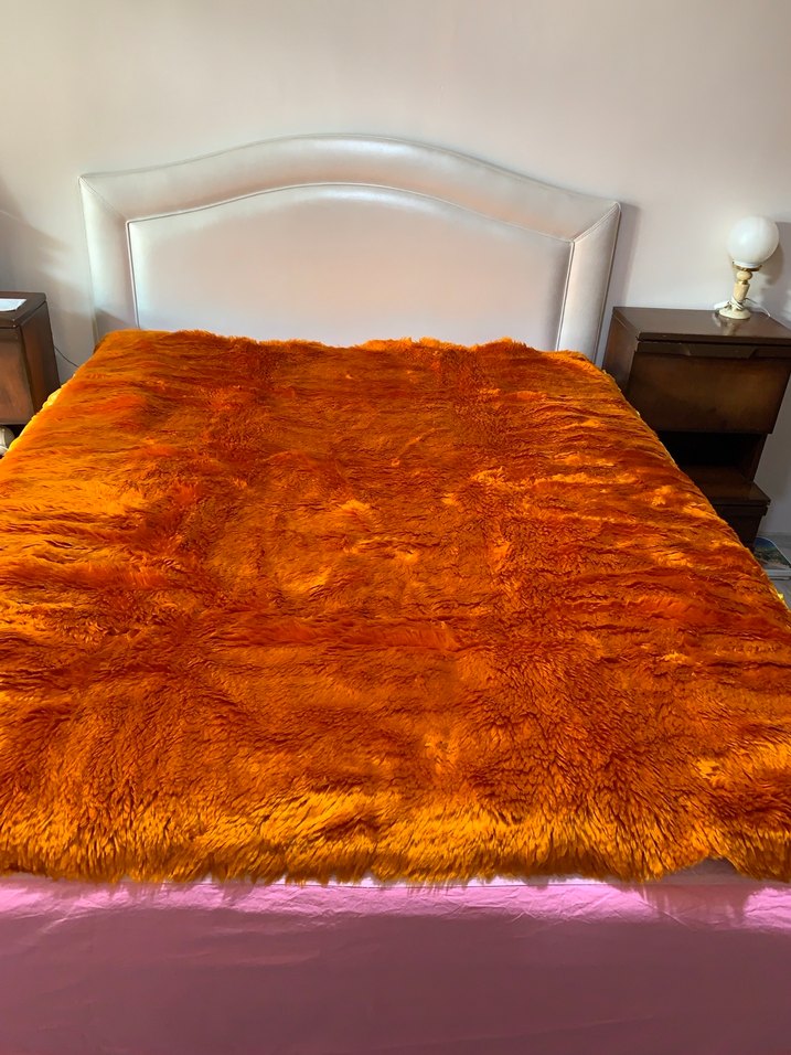 Altın sarısı, Alman malı peluş yatak örtüsü.