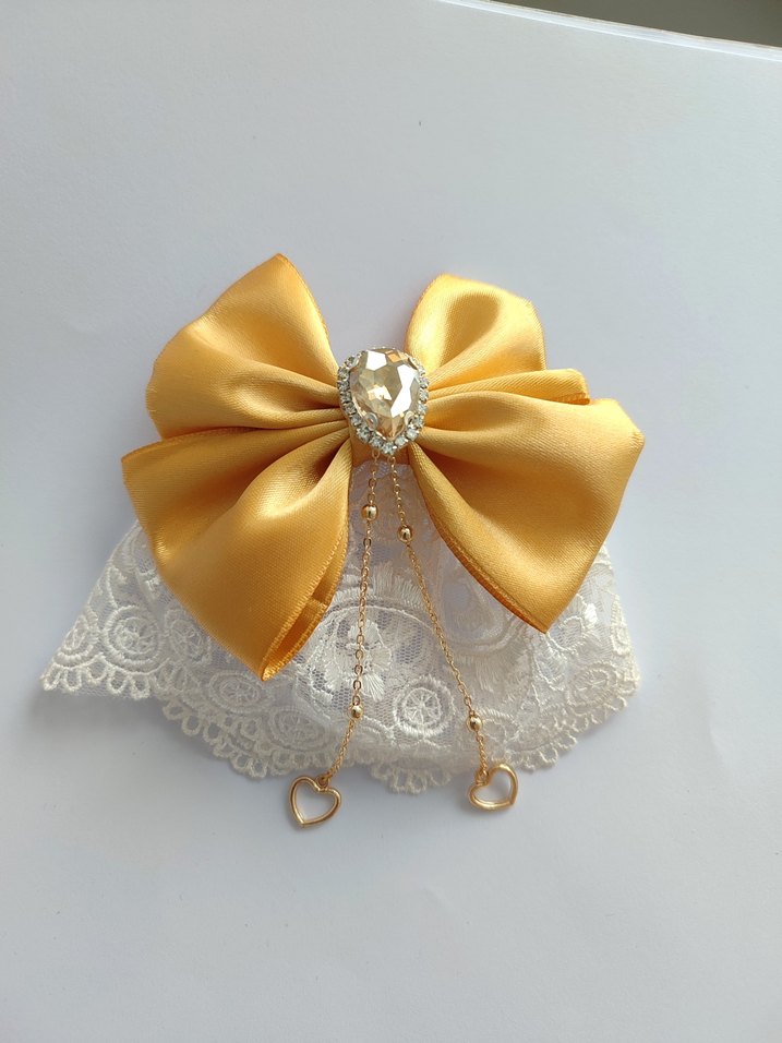 Altın ton saten fiyonk toka, dantel taban, taşlı orta detay ve sallantılı kalp zincirleriyle tasarlanmıştır. Zarif ve gösterişli sevenler için özel el emeği model Sınırlı sayıda üretilmiştir .