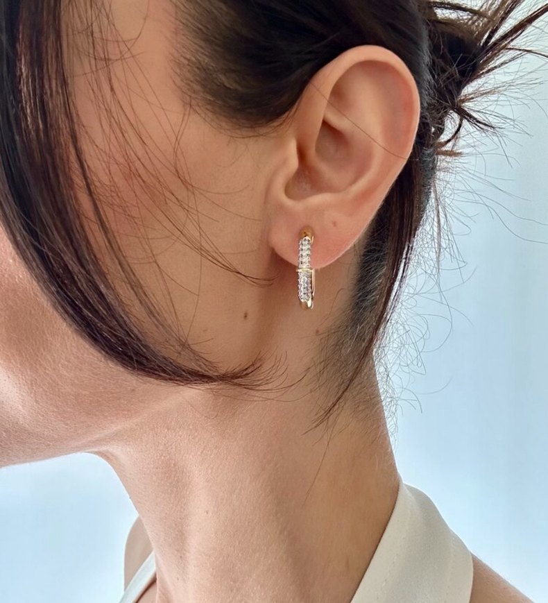 Altın sarısı pırlantalı yuvarlak küpe
